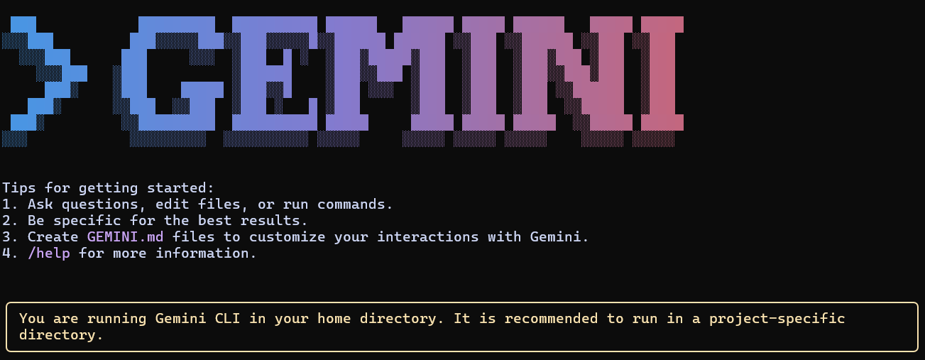 ์ฐธ๊ณ ๋ก ๋ ์ฒ์์ npm install -g/gemini-cli๋ผ๊ณ ์ณค๋ค๊ฐ ํ ์ ์ค์น ์๋์ง?ใ ใ ใ ์ด๋ฌ์ผ๋ ๊ผญ ์ ๋๋ก ๋ช ๋ น์ด ์ฝ๊ณ ์น์๋ผ....
