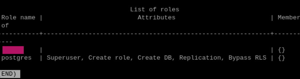 | \du | ๋ชจ๋ ์ฌ์ฉ์(role)์ ๋ชฉ๋ก ๋ณด๊ธฐ |